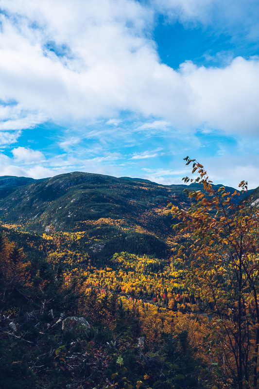 Concernant la météo, nous avons eu un peu froid car nous ne nous attendions pas à avoir de la neige en ce début d’octobre. Notre équipement était donc un peu léger au vu de la température très hivernale. Nous n’avons donc pas pu accéder aux sommets 2 et 3 car le vent et le froid rendaient la montée dangereuse. Si vous êtes un peu sportif, on vous conseille vivement de faire ce sentier car une vue spectaculaire sur la vallée de la rivière Malbaie et sur les monts environnants vous y attend ! Attention si vous avez des problèmes de genoux car le dénivelé sur les roches ne ménage pas les articulations.